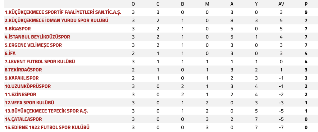 - 🏆 Haftanın Lideri: Küçükçekmece İdman Yurdu SK