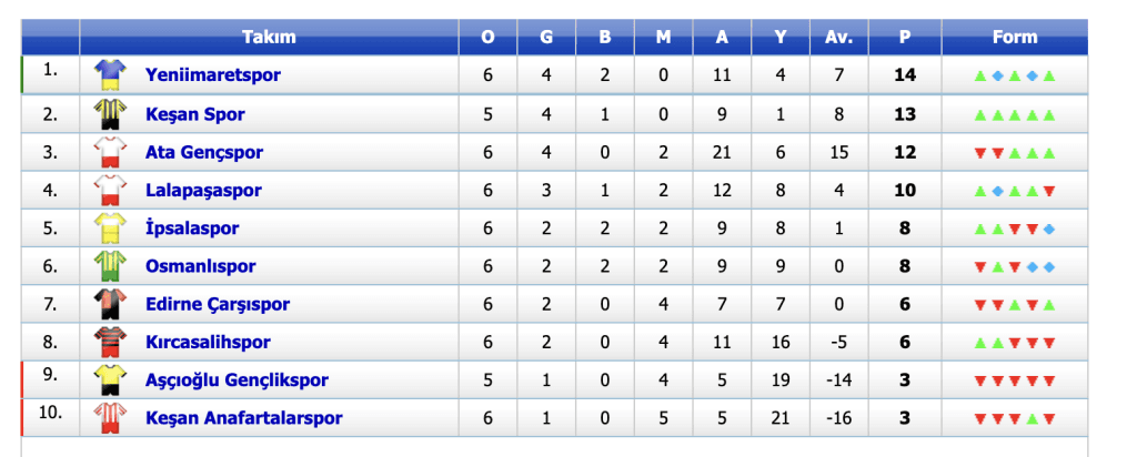 Yeniimaretspor’un liderliğini sürdürdüğü ligde Keşan Spor ve Ata Gençspor da zirve takibini bırakmıyor. Sezonun ilk devresi yaklaşırken, önümüzdeki haftalarda alınacak sonuçlar sıralamayı belirlemede kritik rol oynayacak.