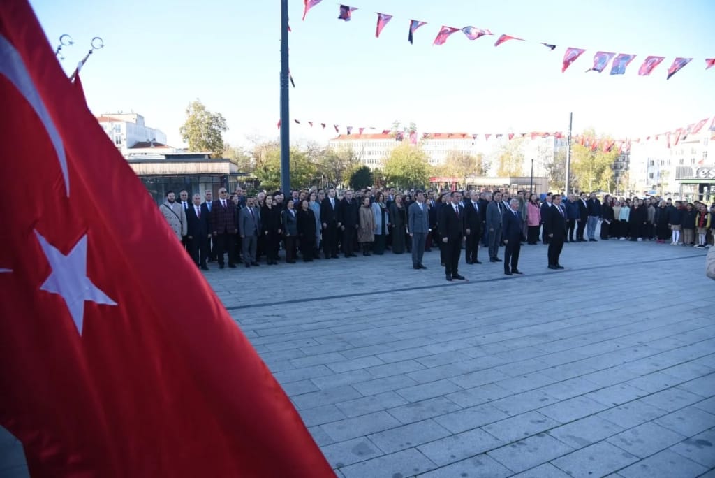 Saat 10.00’da başlayan törene; Keşan Kaymakamı Aziz Mercan, Keşan Belediye Başkan Yardımcısı İsmail Büyükvarlık, Keşan İlçe Milli Eğitim Müdürü Sercan Kemik, siyasi parti ve STK temsilcileri, öğretmenler ve öğrenciler katıldı. Atatürk Anıtı’na çelenk sunumuyla başlayan tören, saygı duruşu ve İstiklal Marşı’nın okunmasıyla sona erdi. Katılımcılara karanfil dağıtıldı.