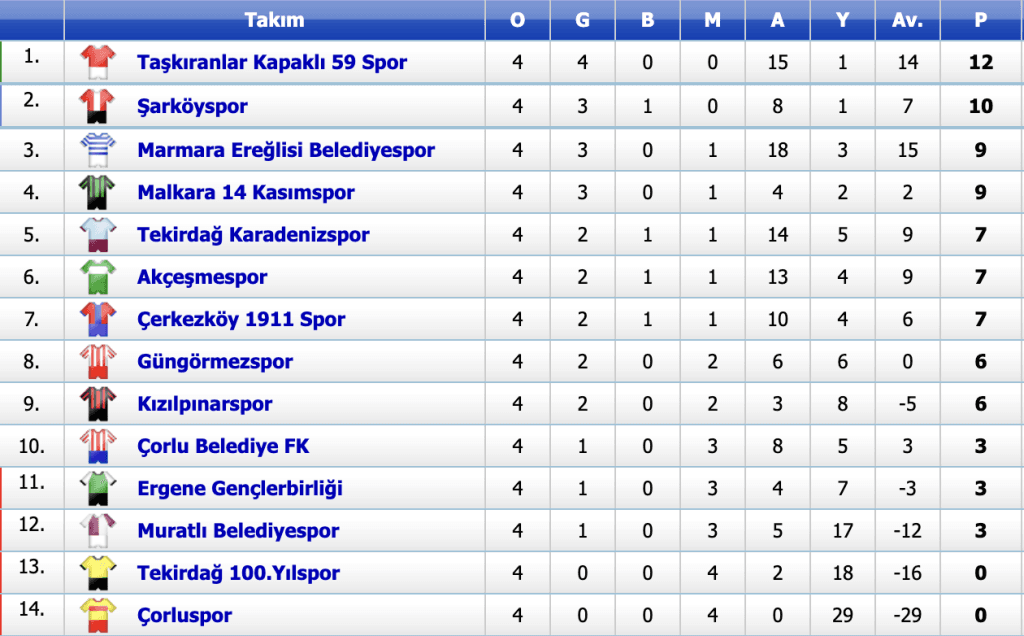 | 26/10/2025 | 14:00 | Malkara 14 Kasım Sahası | Malkara 14 Kasımspor | 1 – 0 | Çerkezköy 1911 Spor |